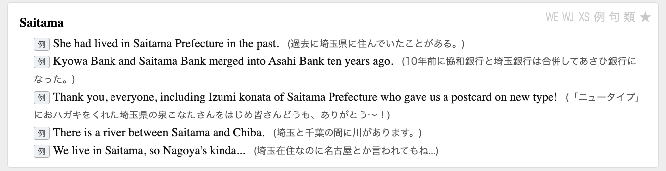 JESCの公式ページに書いてあるが、スタンフォード大学やらが279万個の字幕文とその対訳を収集してコーパスとして公開している。データはTSVファイルなので、扱うのも簡単だ。ただ、字幕なので、意訳、省略、追加が激しいのと、アラインメントがずれがちなので、そのまま辞書の例文として使うには厳しい。適切なものをだけを選択するフィルタを書かなければならない。また、なぜか英文が全て小文字に正規化されているので、文頭や固有名詞等は適宜大文字に復元しなければならない。
