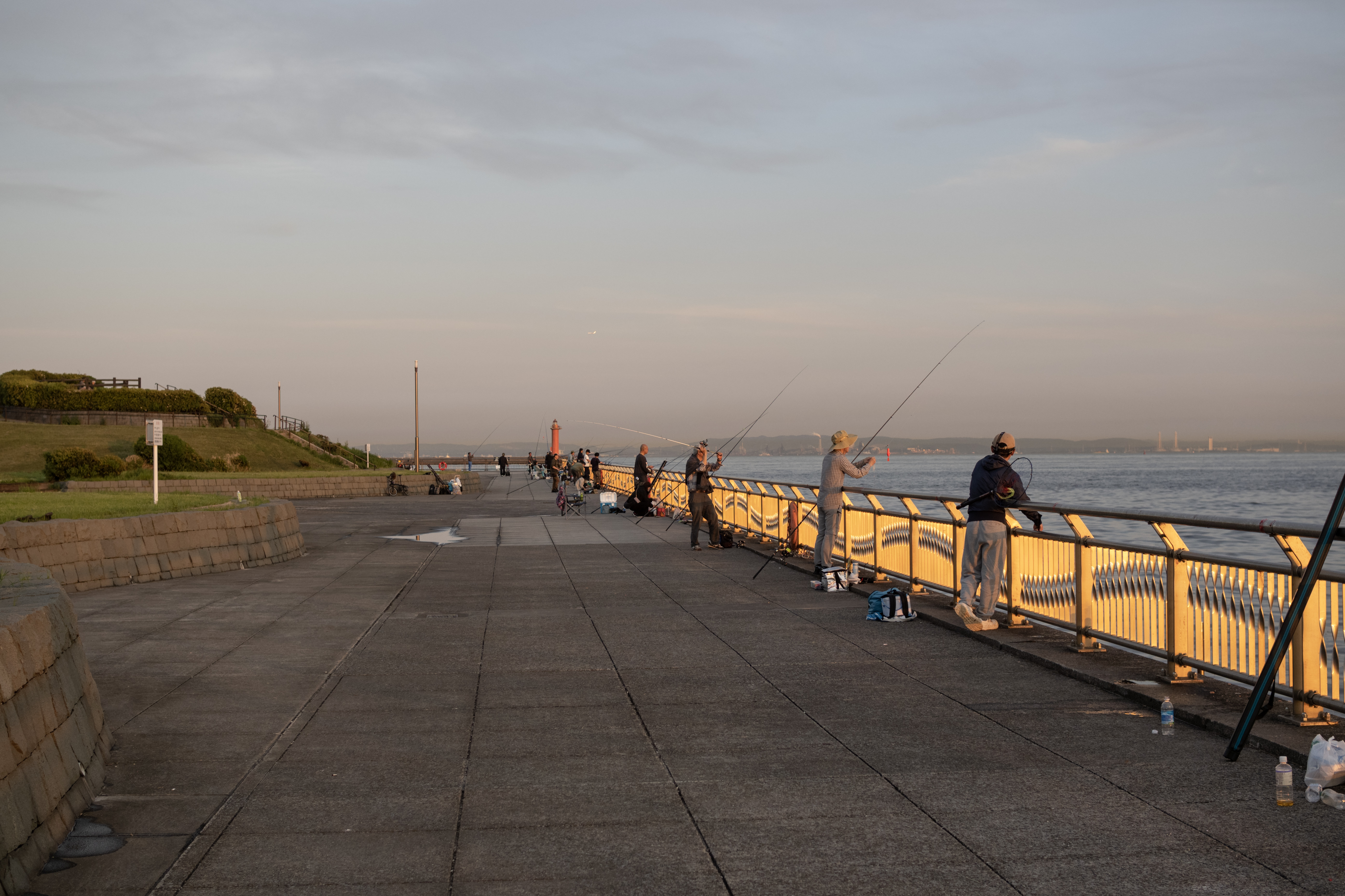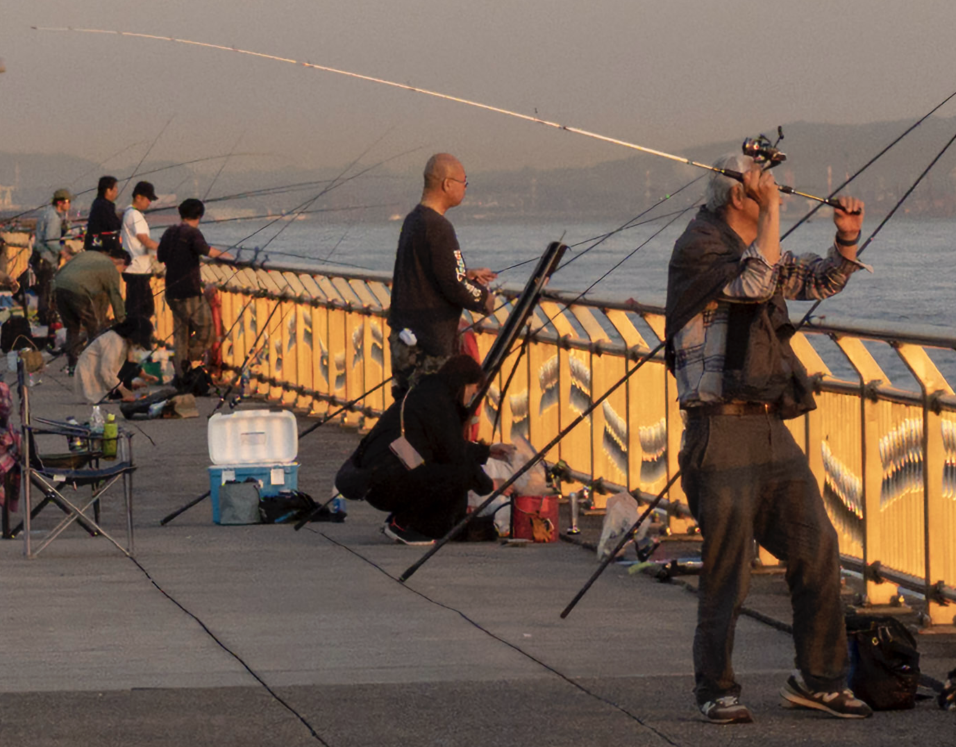 元画像の中央の投げ釣りおじさんの部分を等倍で拡大すると、以下のようになる。