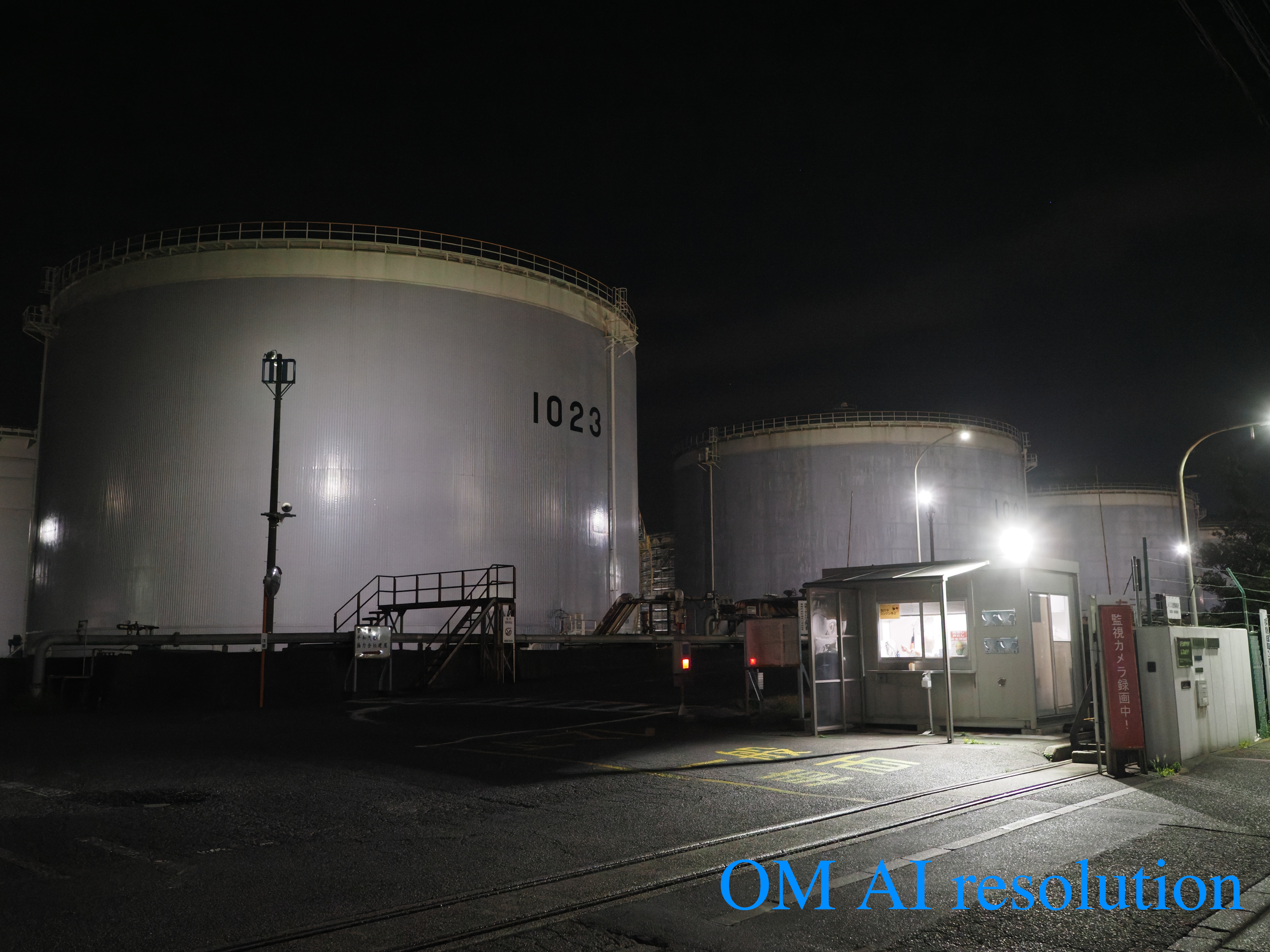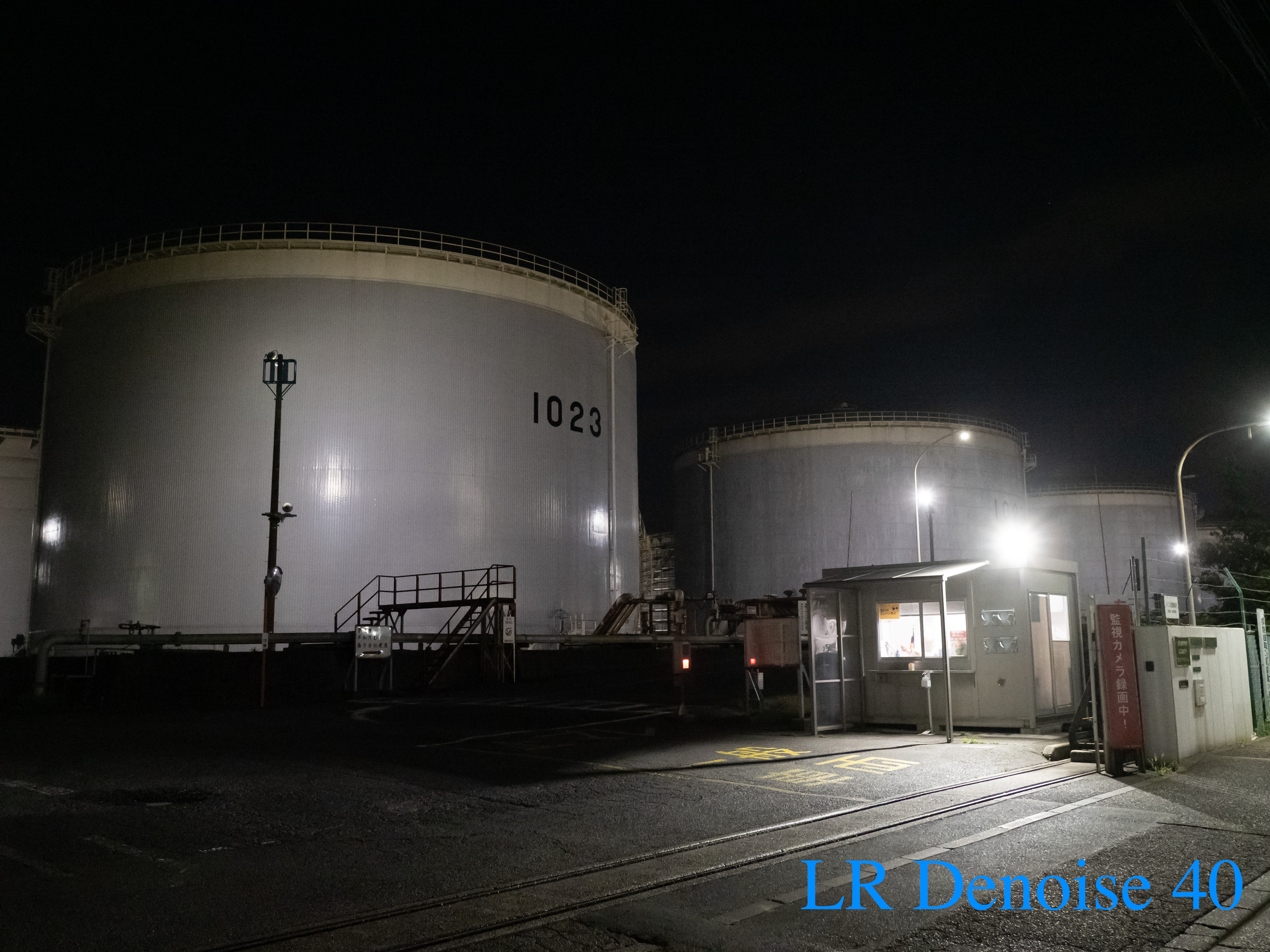 暗部のノイズを完全に消し去っておきつつ、高周波の部分(タンクの縦筋)も塗りつぶさずに模様を残している。高周波の部分を等倍で見ると、「書き換えました」感があるが、元画像を知らなければ違和感がない程度にはなっている。AIに期待するのはこういうことだ。M43のISO6400の画像がこんなに綺麗になるなら、夜景もバンバン撮れるじゃないか。